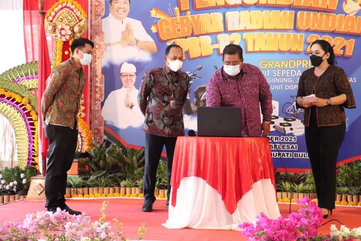 Sebagai bentuk apresiasi kepada masyarakat yang telah membayar PBB-P2 dan sektor Perikanan dengan membayar pajak tepat waktu sampai dengan 31 Agustus 2021, BPKPD Kab. Buleleng menyelenggarakan undian berhadiah kepada seluruh Wajib Pajak yang melakukan pembayaran PBB-P2, acara dilaksanakan Tanggal 10 September 2021 di Lobi Atiti Wisma Kantor Bupati dan Live On Youtube, Instagram Bpkpd Buleleng.