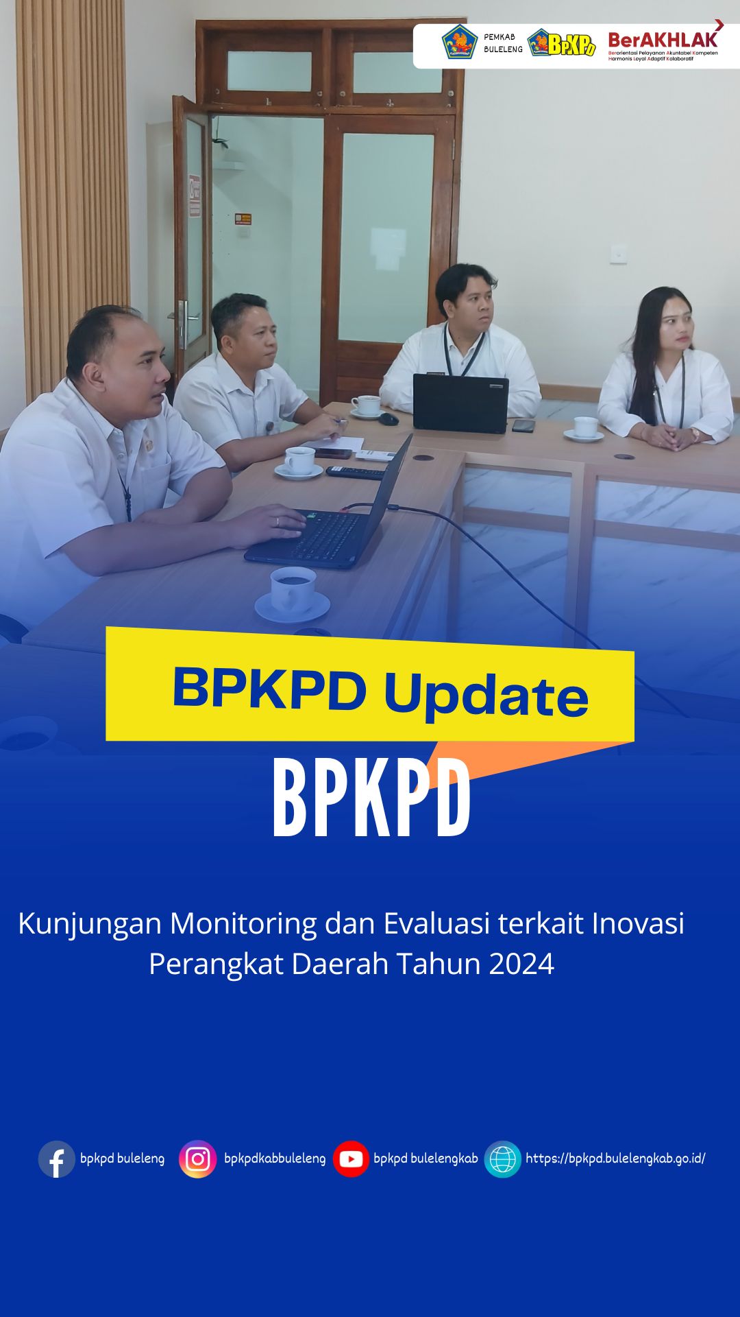 Badan Riset dan Inovasi Daerah (Brida) Kabupaten Buleleng melalui Tim Monitoring dan Evaluasi (Monev) melaksanakan kunjungan kerja ke sejumlah Perangkat Daerah yang terdata dalam Inovasi Perangkat Daerah Tahun 2024. Acara diterima langsung oleh Deny Mahardika sebagai Perencana Ahli Pertama didampingi Analis Publikasi/Analis Berita serta Team Operator Consul BPKPD Kab.Buleleng di ruang rapat pada hari Rabu 4 Juni 2025.