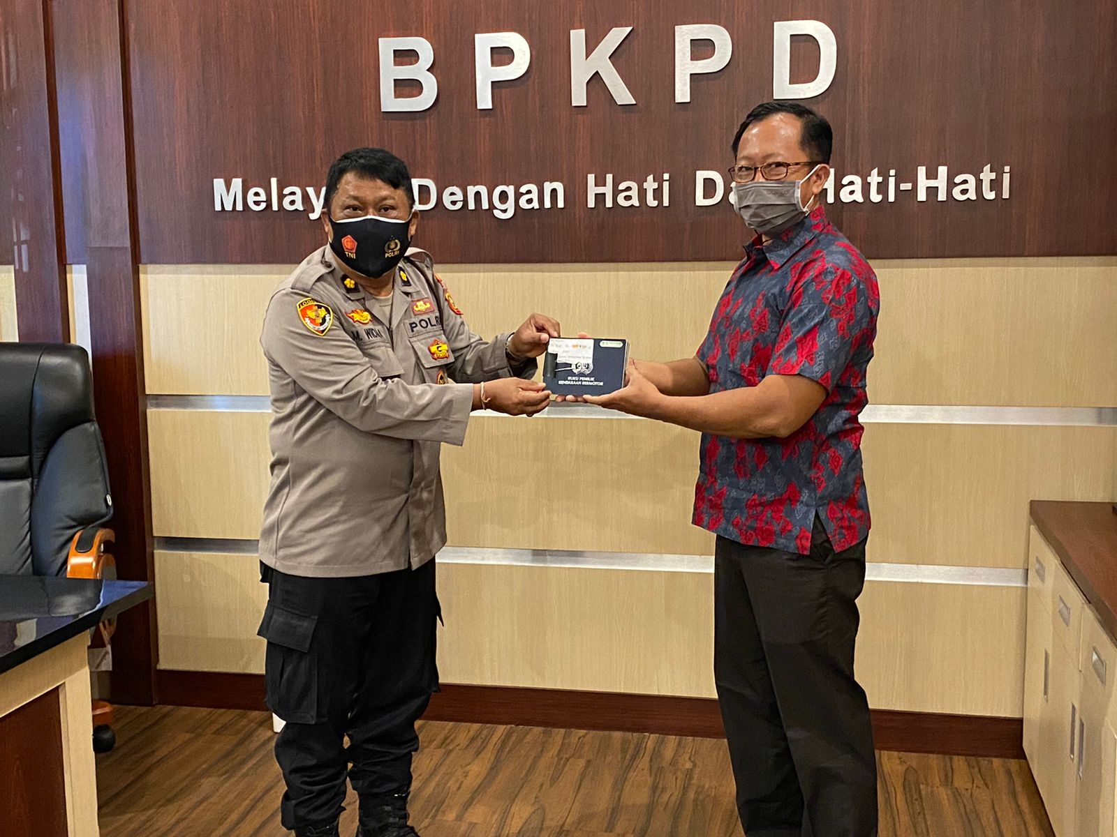 Singaraja, 2 September 2021 Pemerintah Kabupaten Buleleng melalui Kepala BPKPD Kab.Buleleng menyerahkan secara simbolis dokumen Naskah Hibah antara Pemkab Buleleng dengan Polres Buleleng serta BPKB Kendaraan kepada Kapolres Buleleng yang diwakili Kabag Logistik di Ruang Kerja Kepala BPKPD Buleleng, Kamis 2/9/2021.