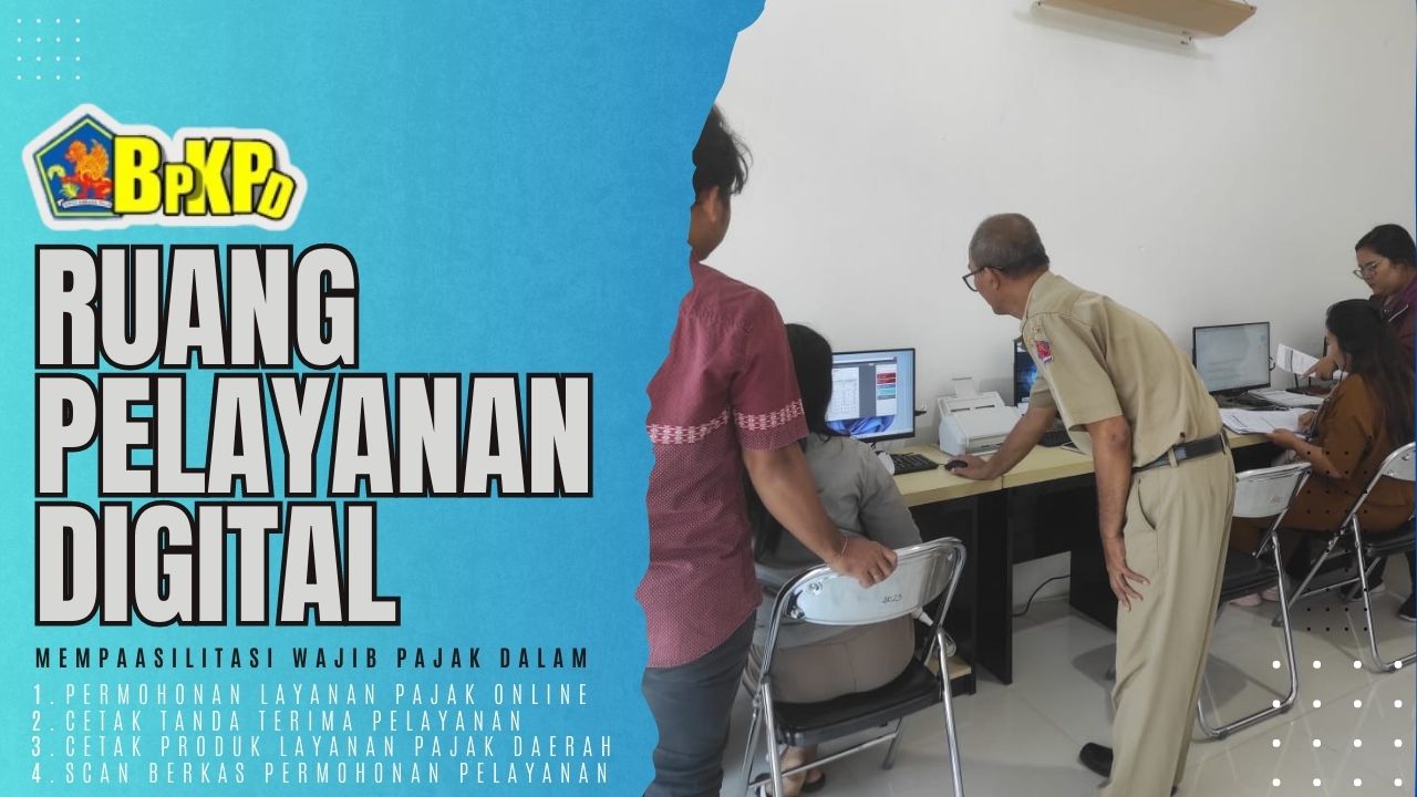 Ruang Pelayanan Digital ini disediakan untuk memfasilitasi wajib pajak yang datang ke BPKPD untuk mengakses pelayanan pajak secara online dan bagi wajib pajak yang belum MELEK Digital, juga didampingi oleh staf IT BPKPD Buleleng. Diharapkan dengan adanya pelayanan digital ini memberikan kemudahan bagi wajib pajak dalam melakukan pelayanan sehingga dapat lebih cepat , Tepat dan akurat.