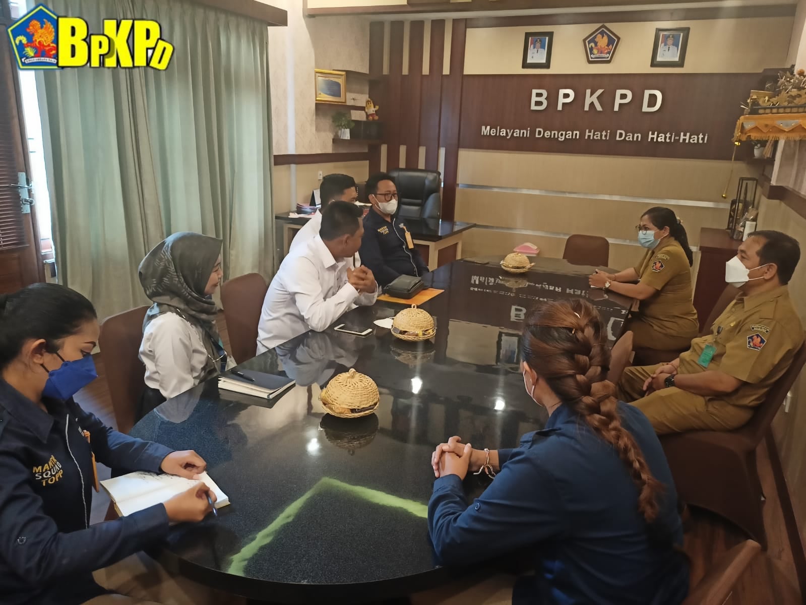 Badan Pengelolaan Keuangan dan Pendapatan Daerah (BPKPD) Kab.Buleleng Melalui Bidang Perbendaharaan, menerima kunjungan dari PT. Taspen Cabang Denpasar yang di terima langsung oleh Sekretaris BPKPD di dampingi Kabid Perbendaharaan dan Staff di ruang Kepala Badan BPKPD.