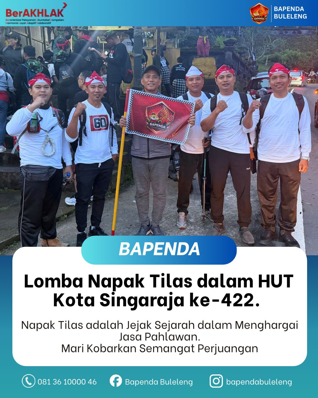 Dalam rangka memperingati Hari Ulang Tahun (HUT) Kota Singaraja ke-422, semangat perjuangan kembali dikobarkan melalui kegiatan Lomba Napak Tilas yang diikuti oleh berbagai instansi, termasuk Badan Pendapatan Daerah (Bapenda) Kabupaten Buleleng.