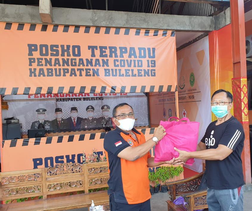 Singaraja, Jumat 23 Juli 2021, Kepala Badan Pengelolaan Keuangan dan Pendapatan Daerah Kab.Buleleng menyerahkan paket sembako yang merupakan sumbangsih secara sukarela untuk disalurkan kepada warga masyarakat yang berdampak secara ekonomi akibat dari pandemi Covid -19. Adapun jumlah paket yang diserahkan kepada BPBD Kab.Buleleng sebanyak 70 paket yang terdiri dari :
