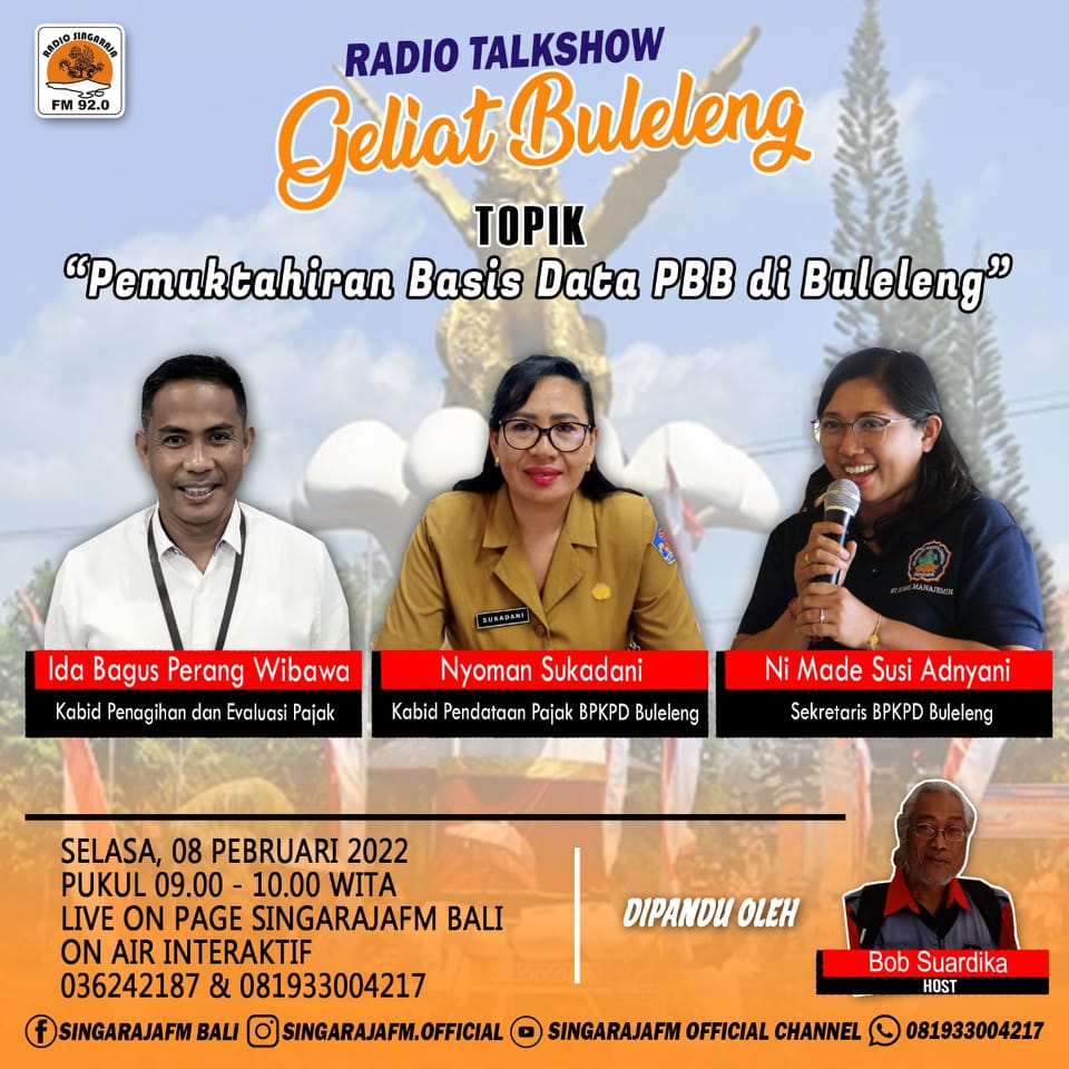 Radio TalkShow Geliat Buleleng di SingarajaFM Bali Dengan Topik " Pemuktahiran Basis Data PBB-P2 di Buleleng " !