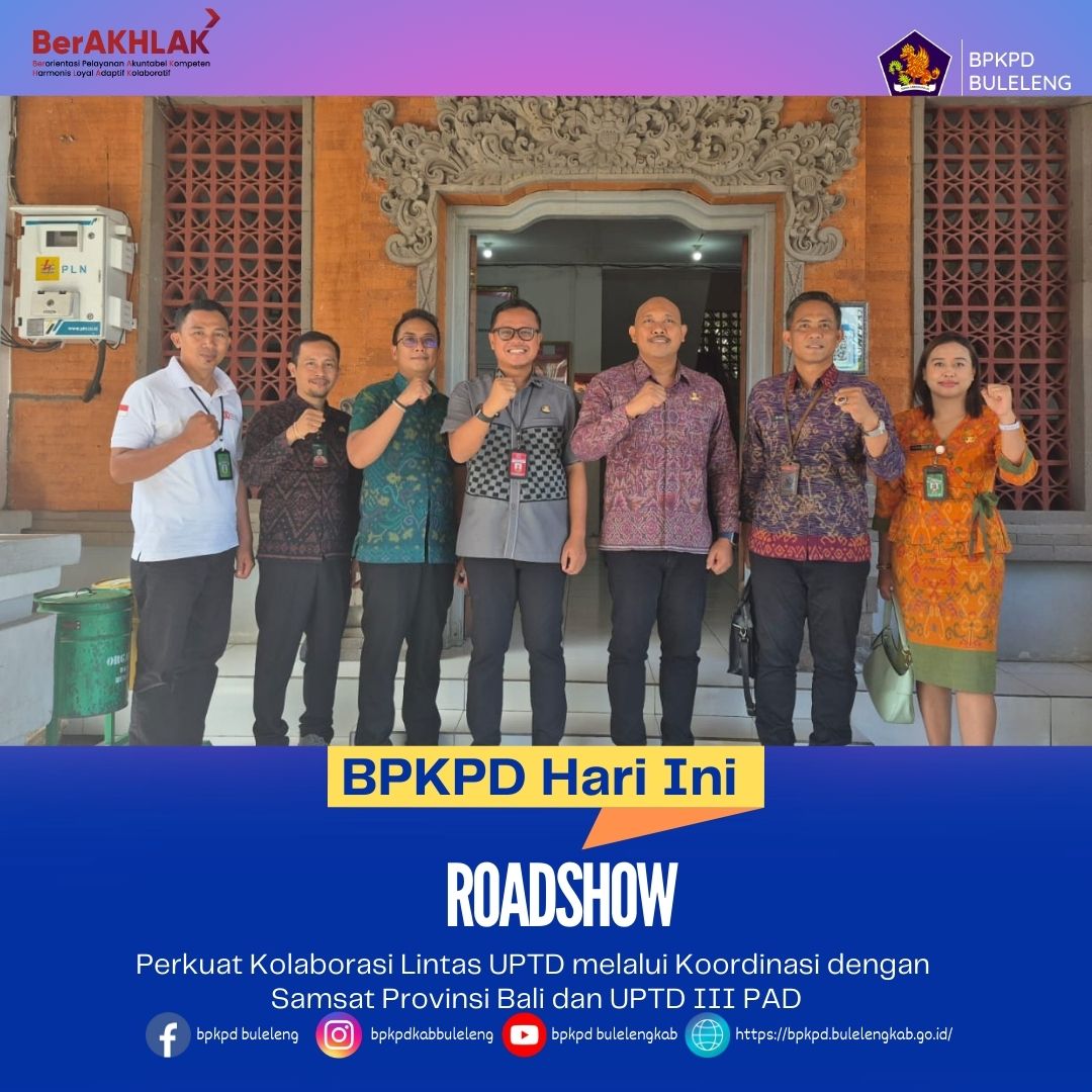 Melalui kegiatan koordinasi dan kunjungan kerja ini, diharapkan terjalin hubungan kerja yang semakin solid antara BPKPD Kabupaten Buleleng dengan UPTD Samsat Provinsi Bali dan UPTD PAD, sehingga mampu mendukung pencapaian target pendapatan daerah secara optimal.