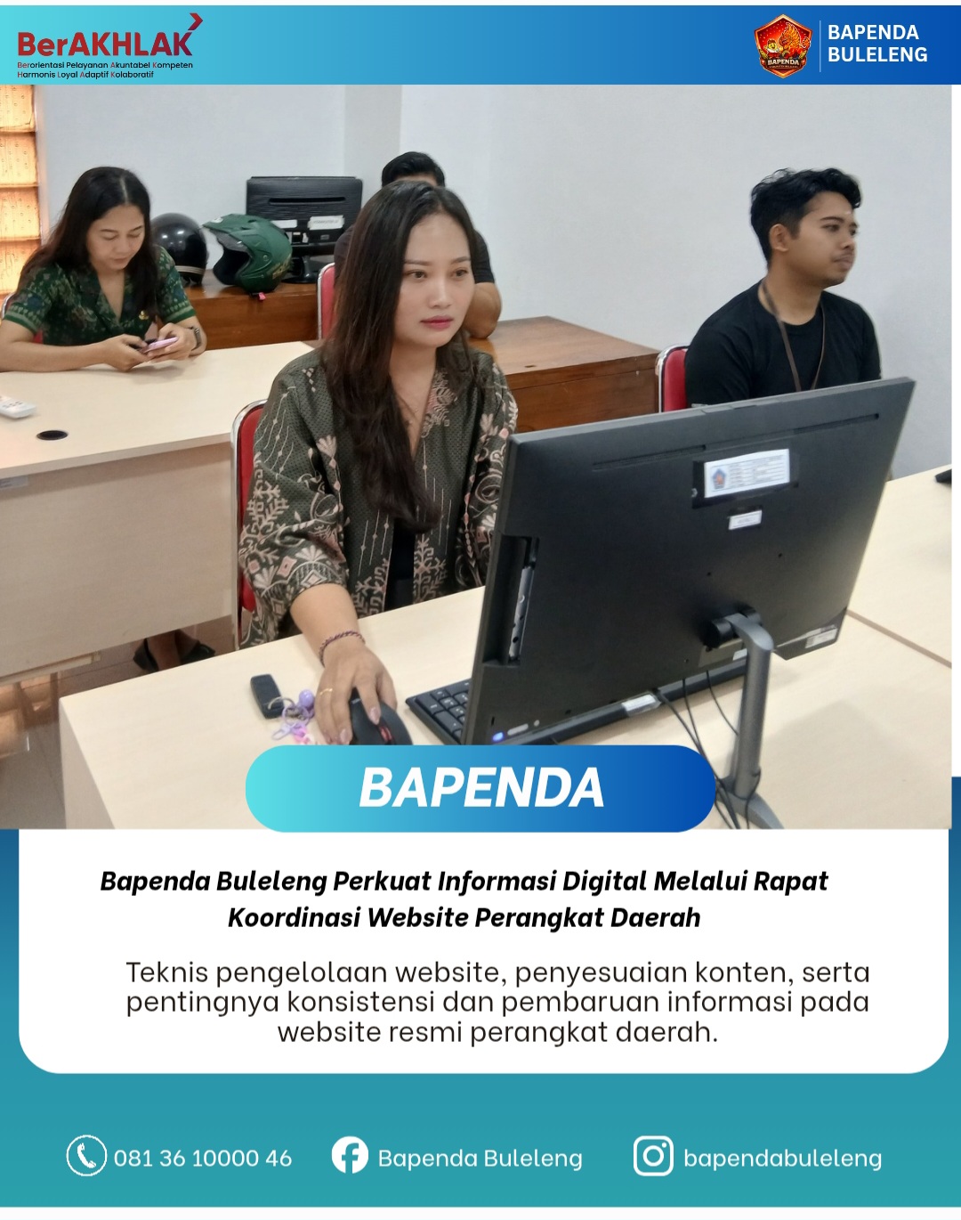 Melalui rapat koordinasi ini, diharapkan pengelolaan website perangkat daerah, khususnya website Bapenda Kabupaten Buleleng, dapat semakin optimal, informatif, serta mendukung transparansi dan akuntabilitas pelayanan publik berbasis digital.