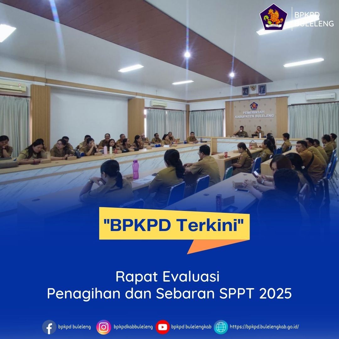 Dalam rangka meningkatkan PAD BPKPD Kab Buleleng melalui Bidang Penagihan dan Evaluasi melaksanakan rapat evaluasi dimana rapat tersebut di Pimpin langsung oleh Bapak Sekretaris BPKPD , dan juga dihadiri oleh Kabid Penagihan dan Evaluasi , Kasubid Penagihan Pajak Daerah, Kepala UPTD, Kepala TU UPTD, Koordinator Kecamatan dan petugas penagihan di masing" UPTD.