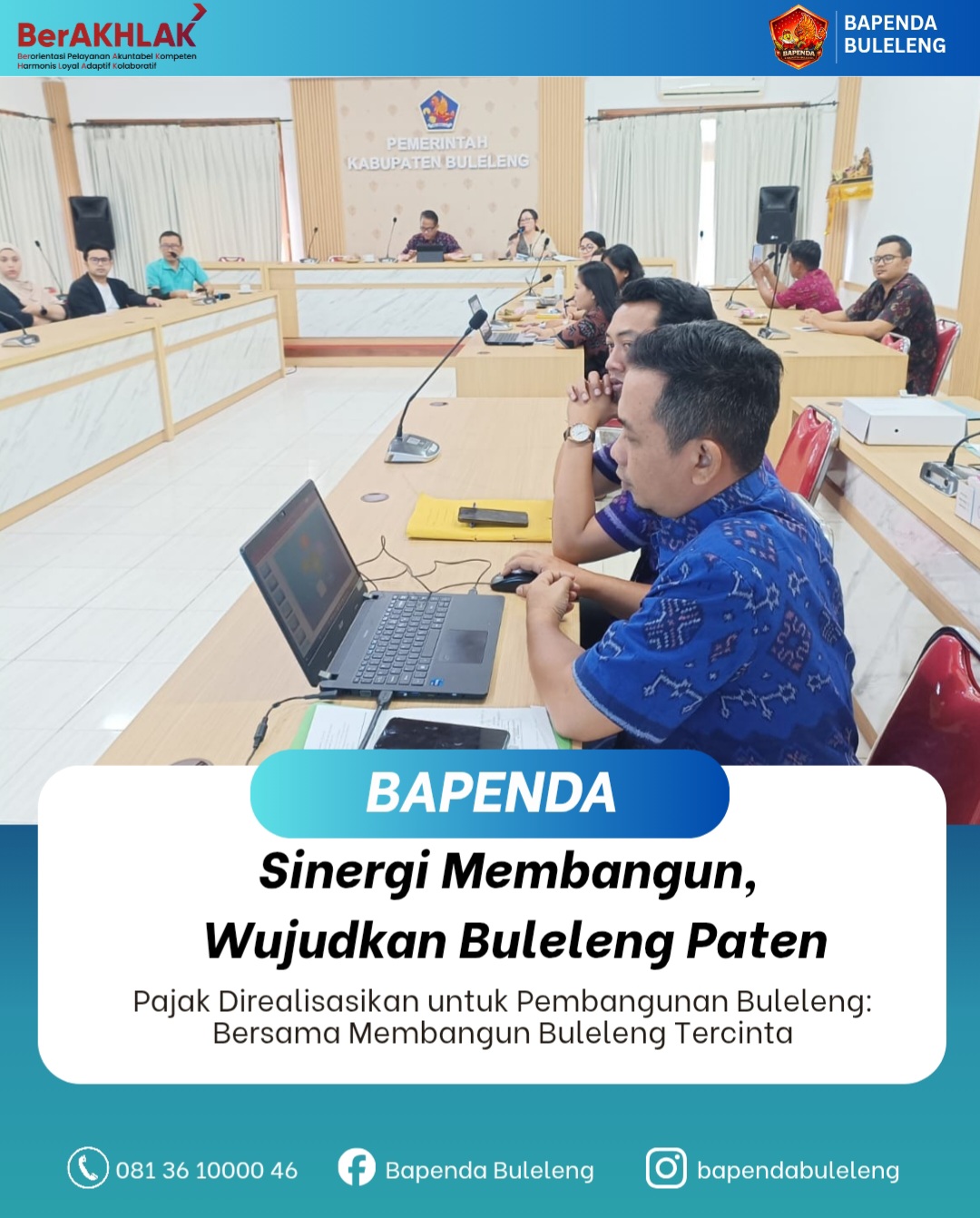 Pemerintah Kabupaten Buleleng melalui Badan Pendapatan Daerah (Bapenda) kembali menegaskan komitmennya dalam mengoptimalkan pendapatan daerah guna mendukung pembangunan Buleleng tercinta. Hal tersebut diwujudkan melalui kegiatan Sosialisasi Peraturan Daerah Nomor 9 Tahun 2023 tentang Pajak Daerah dan Retribusi Daerah yang dilaksanakan di Ruang Rapat BKAD Kabupaten Buleleng, Selasa (24/2).