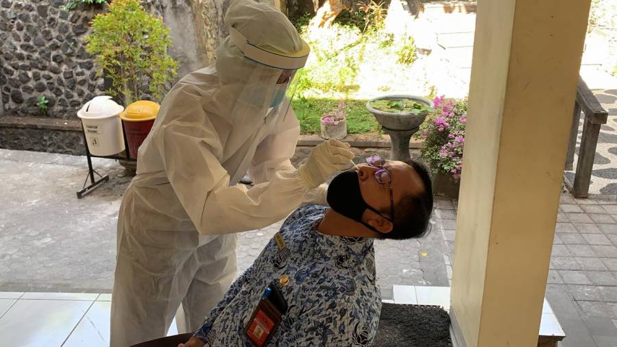 Singaraja, 17 November 2020. Gugus Tugas Percepatan Penanganan (GTPP) Covid-19 Kabupaten Buleleng mulai melakukan swab massal untuk para ASN di lingkup Pemerintah Kabupaten (Pemkab) Buleleng. Kali ini, giliran ASN di lingkup BPKPD Buleleng yang menjalani tes swab di halaman Kantor BPKPD Buleleng yang diikuti oleh 127 ASN . Test swab ini dilakukan secara massif sesuai instruksi dari Pemerintah Pusat dan Provinsi untuk mendeteksi awal ASN yang terjangkit virus Covid-19.