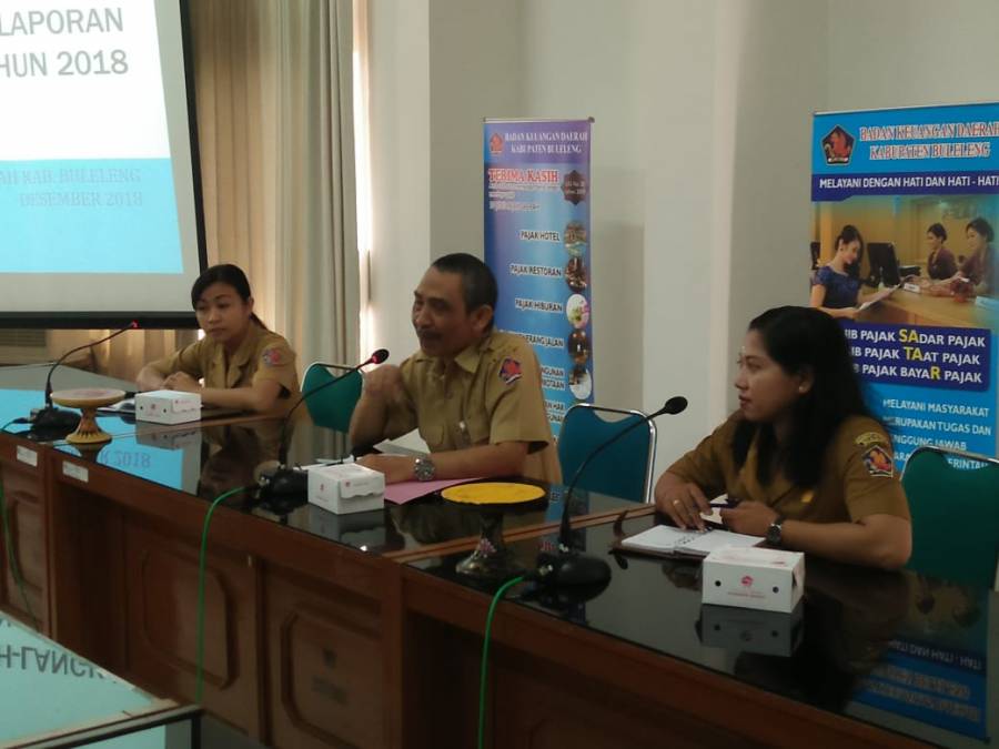 SINGARAJA, 3 September 2018 bertempat di Ruang rapat BKD Buleleng di gelar pertemuan rutin untuk menyusunan laporan keuangan akhir tahun. Rapat tersebut dibuka oleh Bapak Kepala Badan Keuangan Daerah Kabupaten Buleleng , Bapak Bimantara,SE. Dalam arahan beliau disebutkan agar seluruh SKPD mentaati jadwal pelaksanaan penyusunan laporan keuangan, dan SKPD mengambil langkah-langkah untuk menindak lanjuti hasil pembinaan yang telah dilaksanakan oleh tim Pembina pengelola keuangan, agar tidak menjadi permasalahan pada saat pemeriksaan oleh BPK. Pertemuan tersebut dihadiri oleh seluruh SKPD yang ada dilingkup Pemerintah Kabupaten Buleleng.