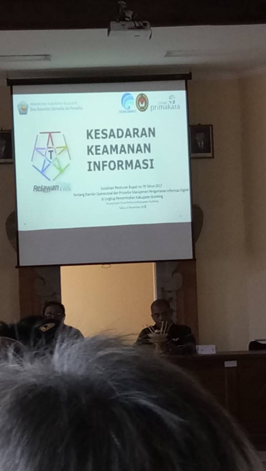 Menghadiri rapat Sosialisasi Peraturan Bupati Nomor 79 Tahun 2017 tentang SOP MANAJEMEN PENGAMANAN INFORMASI DIGITAL LINGKUP PEMKAB BULELENG pada hari Selasa, 06 November 2018 bertempat di Dinas Pertanian