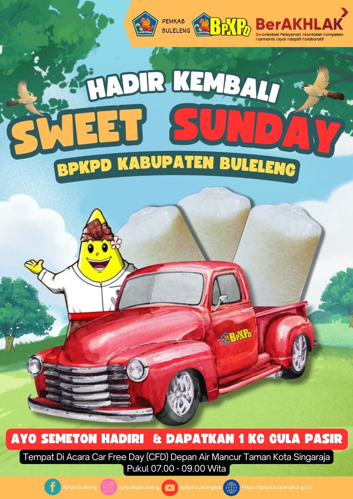Kepada wajib pajak yang membayar pajak PBB-P2 dengan menggunakan kanal digital (QRIS, M-Banking, Virtual Account, Indomaret, Tokopedia, Gopay dan ATM) Semeton berkesempatan memperoleh "GULA PASIR 1 (satu) Kg" jika melakukan transaksi virtual tersebut.