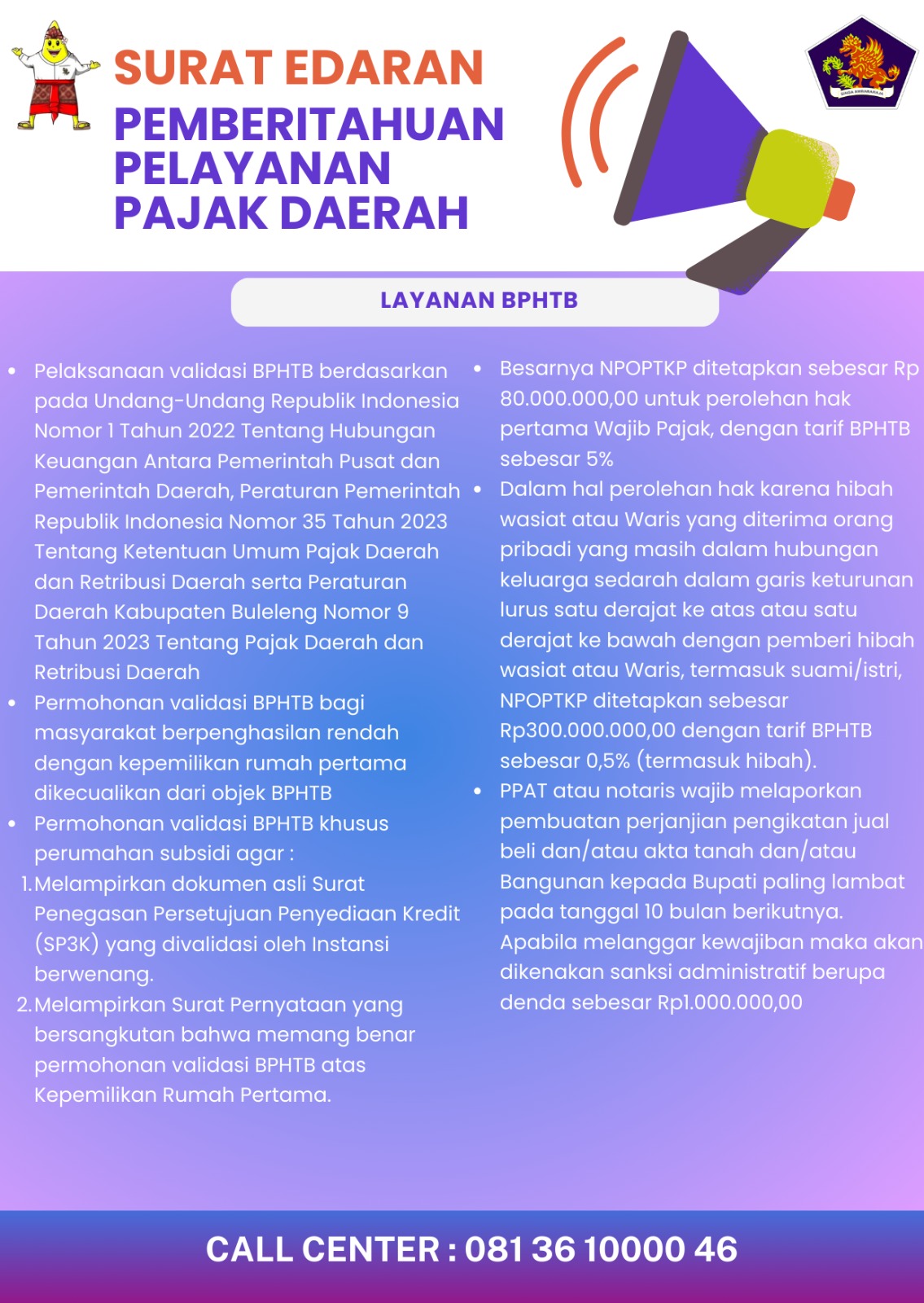 Pemberitahuan Pelayanan Pajak Daerah BPHTB !!