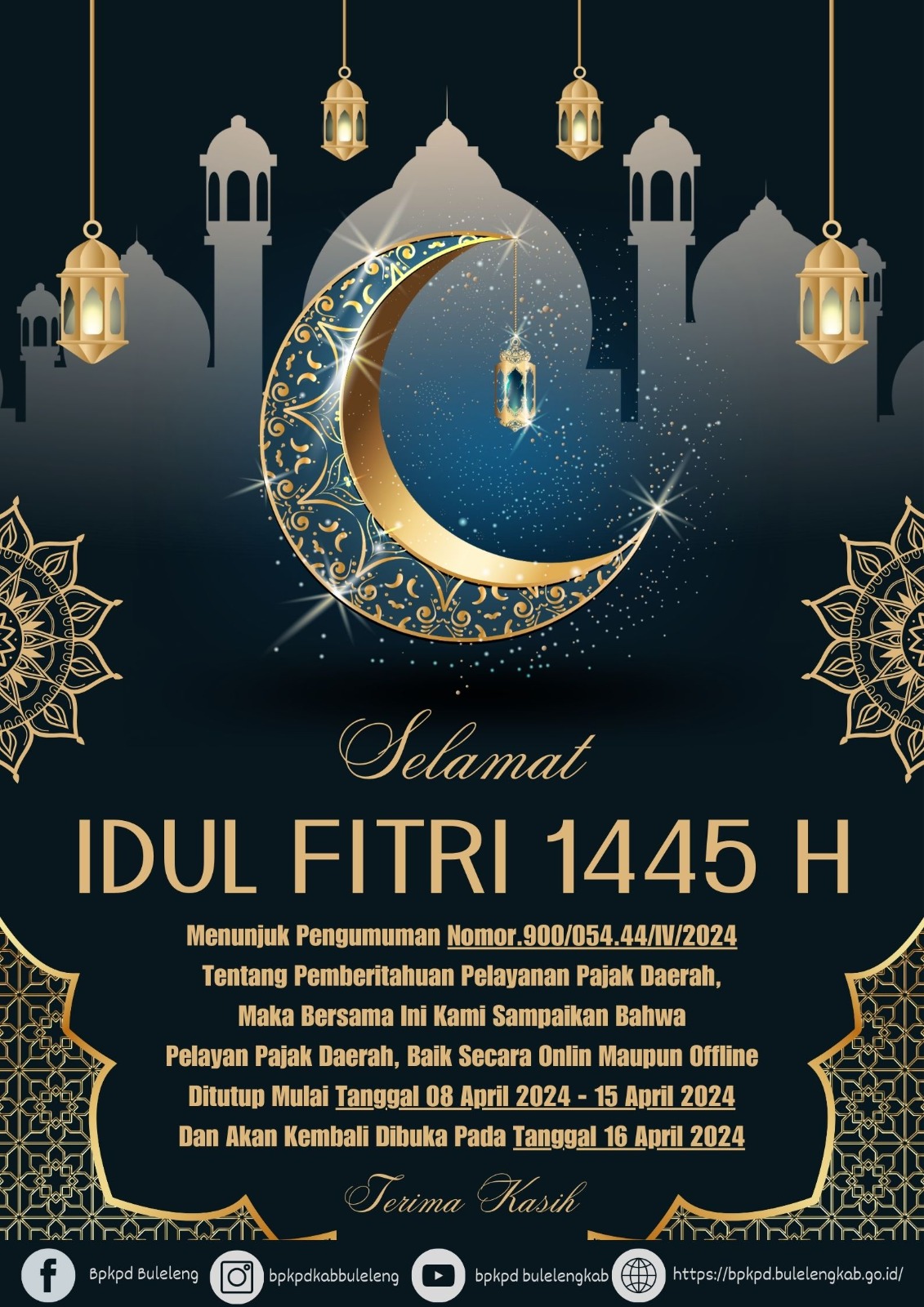 Maka bersama ini kami sampaikan bahwa BPKPD Kab.Buleleng dan Pelayanan Pajak Daerah baik secara Online maupun Offline "DI TUTUP" mulai Tanggal 08 April 2024 - 15 April 2024 dan " DIBUKA" kembali Tanggal 16 April 2024.